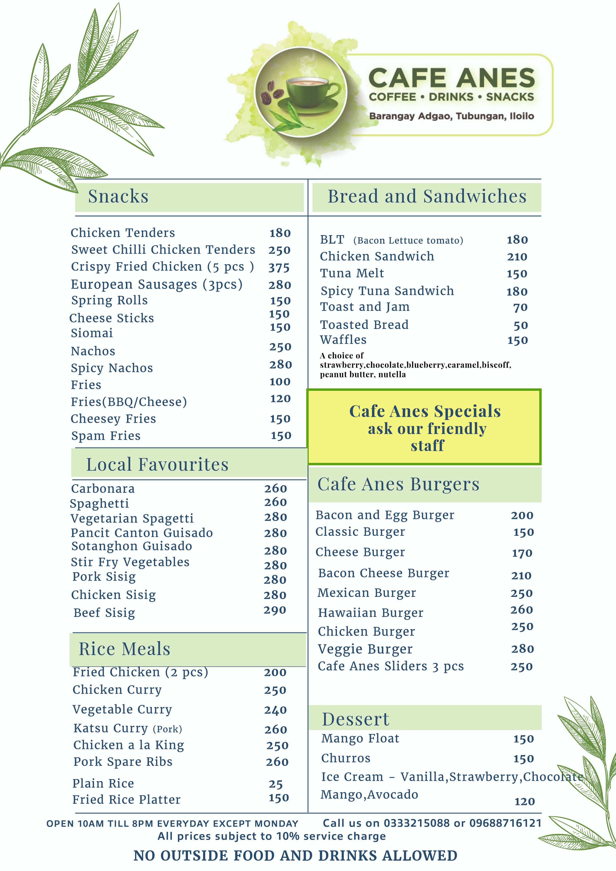 The name Cafe Anes is in memory of Mercy’s mother Anesia (Anes) Tabucuran and her father Ireneo (Erning)Tabucuran